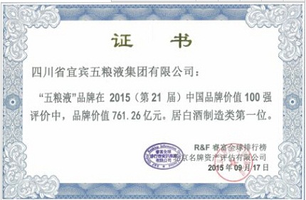 9月17日,“2015(第21届)中国品牌价值100强”在北京揭晓。在互联网+的大趋势下,海尔、联想、五粮液三大品牌借转型创新,品牌价值持续提升,位居该榜单前三甲。五粮液以761.26亿元的品牌价值蝉联“中国品牌价值100强”第三名,居白酒制造类第一位。