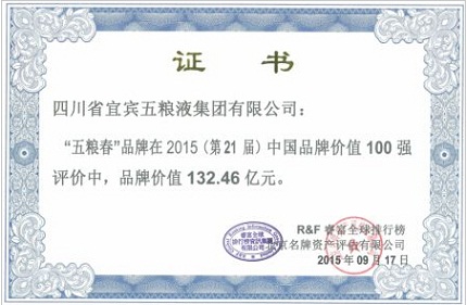 “2015中国品牌价值100强”报告显示,今年五粮液品牌价值较2014年的735.80亿元增长了25.46亿元。同时,五粮液公司旗下的五粮春、五粮醇分别以132.46亿元、98.65亿元的品牌价值位居第28位和第38位。