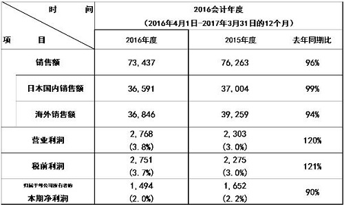 1. 2016年度,随着车载事业的发展,实现了实质性增收。在白电事业以及车载?工业产品比率增加的机电事业等事业领域实现增益。净利润较今年2月2日发表的预期值增加194亿日元。