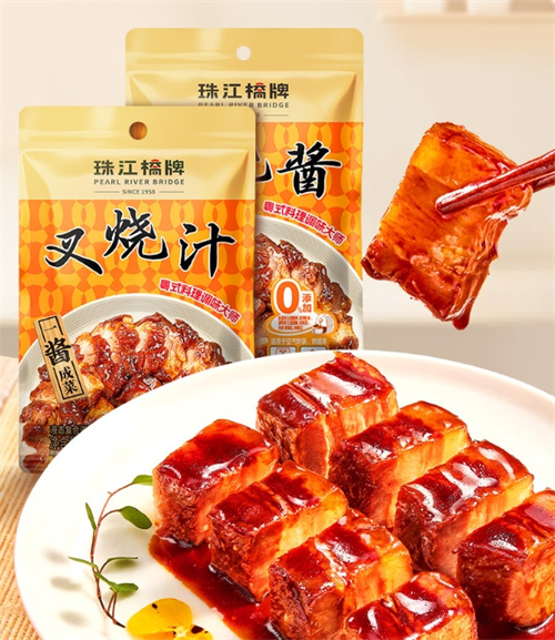 叉烧酱运用珠江桥特色的广式发酵工艺酿造酱油及黄豆酱,搭配天然蜂蜜,经典配方还原酒楼风味。准备适量猪肉,切成合适的大小,放入碗中,倒入叉烧酱腌制一段时间。将腌制好的猪肉放入空气炸锅,放入空气炸锅180摄氏度烘烤15分钟,翻面,再烘烤10分钟,即可出锅。烤制出金黄红润、酱香与蜜汁烤肉香气扑鼻的叉烧肉。搭配上一份米饭和清炒时蔬,一份经典广东名菜——蜜汁叉烧便当就诞生了。蜂蜜的甜味与猪肉的咸鲜相互融合,令人垂涎三尺,让你在夏日职场中也能享受这份甜蜜的满足。