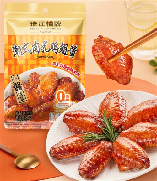 潮式南乳鸡翅酱融合了南乳醇厚发酵香、鱼露海洋鲜香和咸蛋黄咸香,味道丰富。把鸡中翅洗净,用厨房纸吸干水分,在背部切两刀,放入盆中,倒入潮式南乳鸡翅酱腌制20-30分钟。将腌制好的鸡中翅放入空气炸锅,180摄氏度烤10分钟后翻面再烤3-5分钟。南乳的香味渗透到鸡肉中,形成了丰富的香气和口感。搭配上粗粮和水果,一份充满潮汕特色的南乳鸡翅便当,能让你在夏日职场中感受不一样的风味。