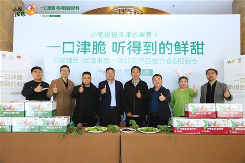 一根根带着北方泥土芬芳的水果萝卜,整齐陈列在以“一口津脆 听得到的鲜甜”为主题的推介会现场,通过包装袋上的二维码,南国消费者可以追溯它从武清田水铺村到南方的千里之旅。